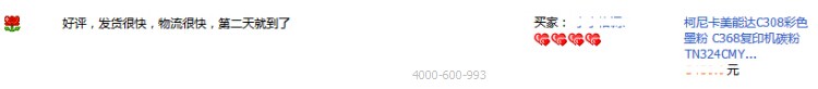第二天,謝先生收到貨了,把碳粉更換上機(jī)器使用后,就過來給了評價。評價如下: