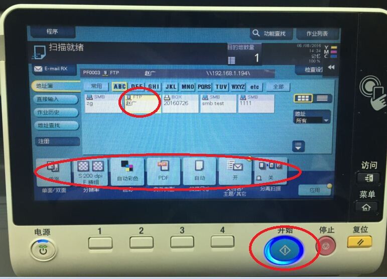 5)選中之前所創建的FTP項,設置好掃描需求后點擊右下方發光的藍色開始鍵,回到電腦設置的文件夾中查找對于圖像即可