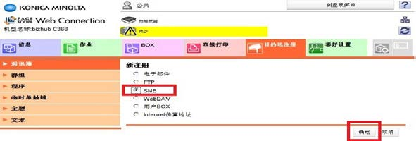 1)在IE地址欄中輸入機器的IP地址進入Web Connection