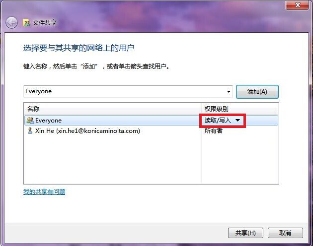 1)PC端設置共享文件夾,共享設置everyone的讀取和寫入權限