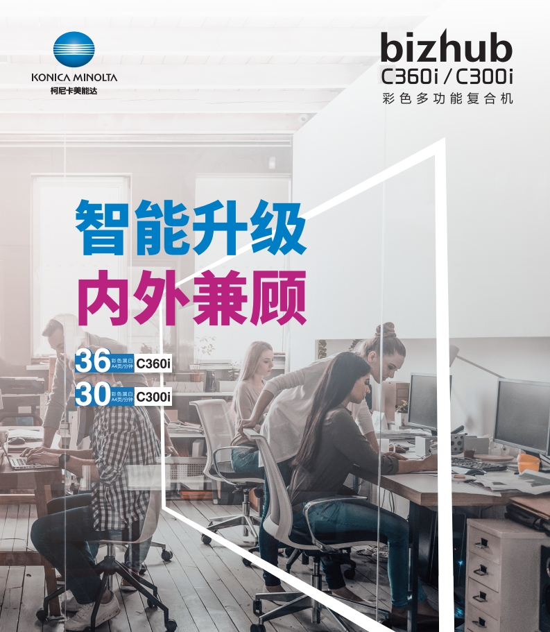 還在為黑白文件缺乏表現力而困擾?還在為辦公設備功能單一、效率低下、成本難控而煩惱?柯尼卡美能達彩色復印機bizhub C300i,專為追求效率與品質的中小型企業及部門量身打造,集高速彩色打印、復印、掃描于一體,助您輕松駕馭繁忙工作,開啟高效智能辦公新時代!