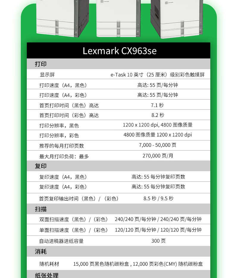• 利盟(Lexmark)CX963se復印機價格 彩色激光多功能數碼復合機圖片 55頁/分鐘參數 安全快速打印
